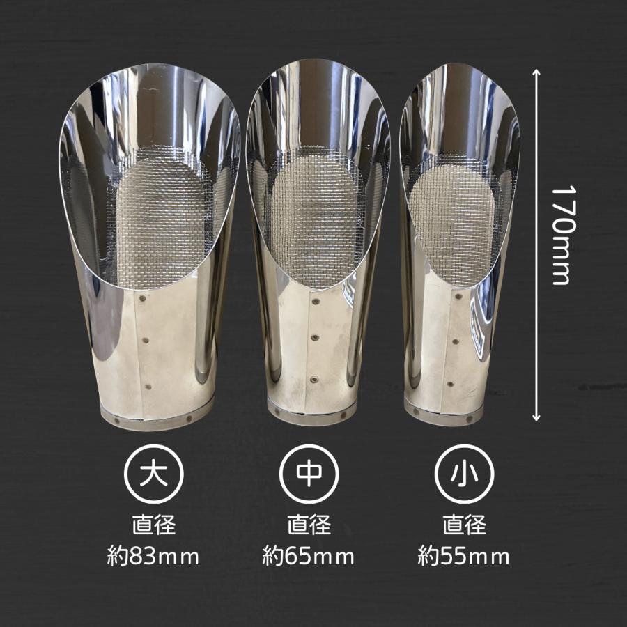 大・中・小の3点セットで、鉢の大きさに応じて使い分けが可能。特に小サイズは多肉植物やミニ盆栽など、葉の間からの土入れに最適です。